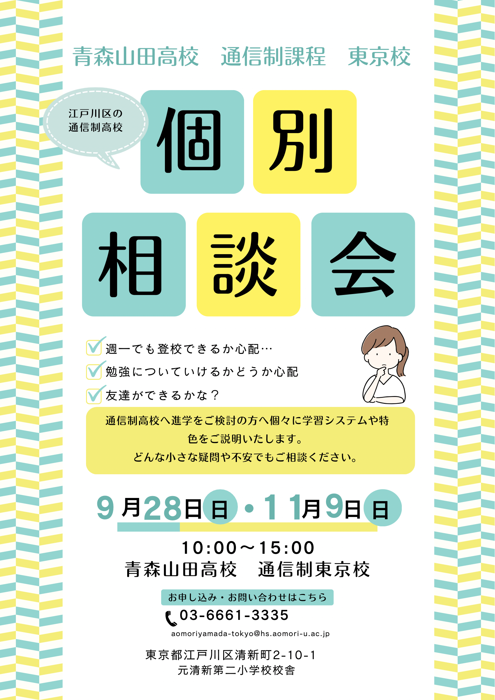 9/7(日)、11/9(日)は完全予約制の個別相談会を行います🏫